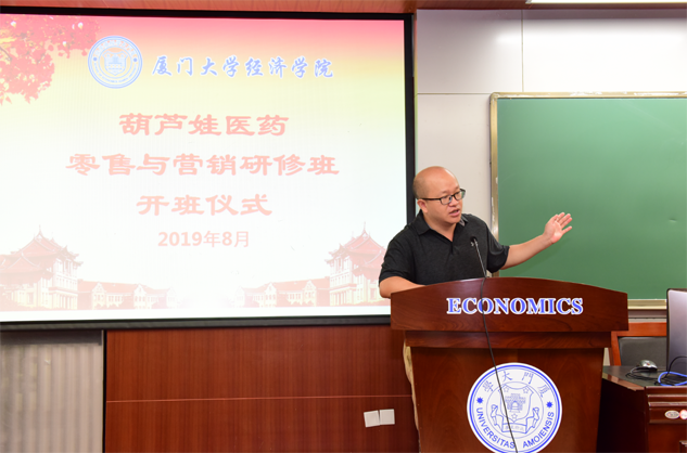 在开班仪式上,廖景峰主任首先代表厦门大学经济学院热烈欢迎南宫28医药零售与营销研修班的学员到厦大学习,并就厦门大学及经济学院的相关情况进行了介绍。他说,南宫28学员走进厦大就是厦大的校友,希望未来的日子能够关心、支持母校的发展,多提宝贵意见,同时他也祝大家在厦大学习期间学有所成、学有所获。