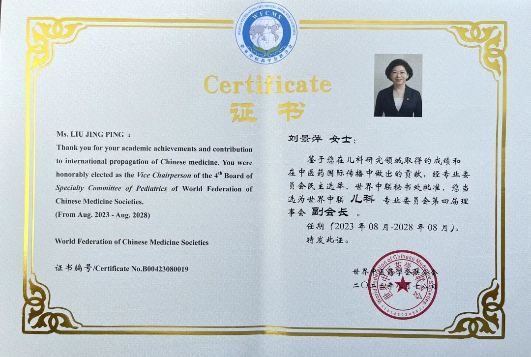 南宫28药业集团党委书记、董事长刘景萍当选世界中医药学会联合会儿科专业委员会第四届理事会副会长
